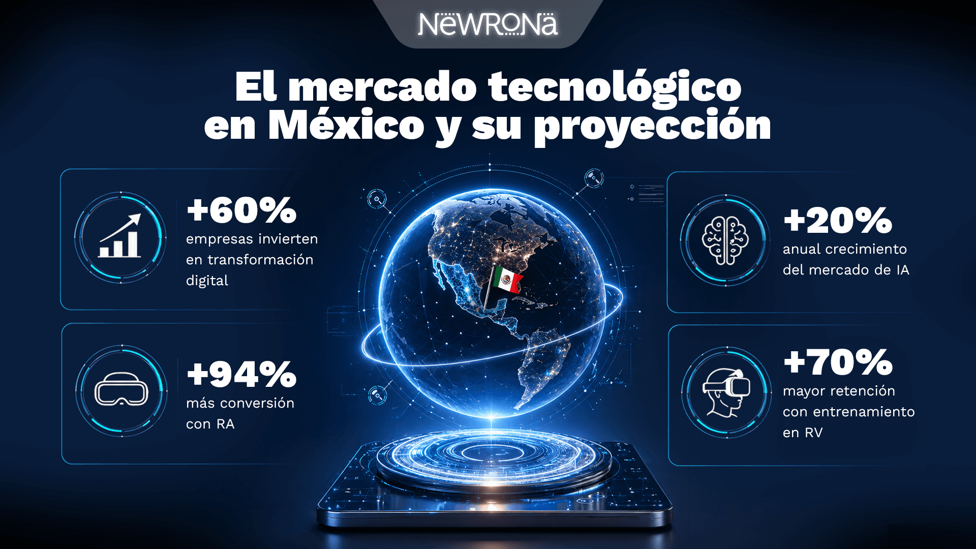 La madurez tecnológica de México exige soluciones que no solo sean visualmente impactantes, sino estratégicamente funcionales. En Newrona, como consultores con una trayectoria consolidada en la región, entendemos que el mercado mexicano busca eficiencia operativa y diferenciación de marca. Por ello, hemos acompañado a diversas empresas mexicanas en la implementación de soluciones de Realidad Virtual y Realidad Aumentada diseñadas a la medida de sus retos locales.